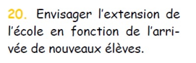 Envisager l’extension de l’école en fonction de l’arrivée de nouveaux élèves.