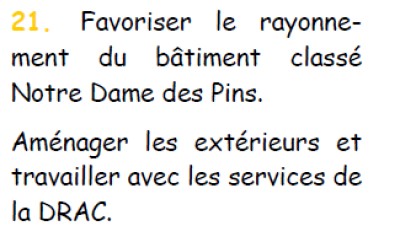 Favoriser le rayonnement du bâtiment classé Notre Dame des Pins.