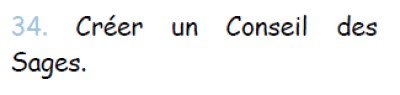 34 - Je ne vois pas l'utilité d'un tel Conseil, mais rien n'a été fait, donc promesse non tenue.