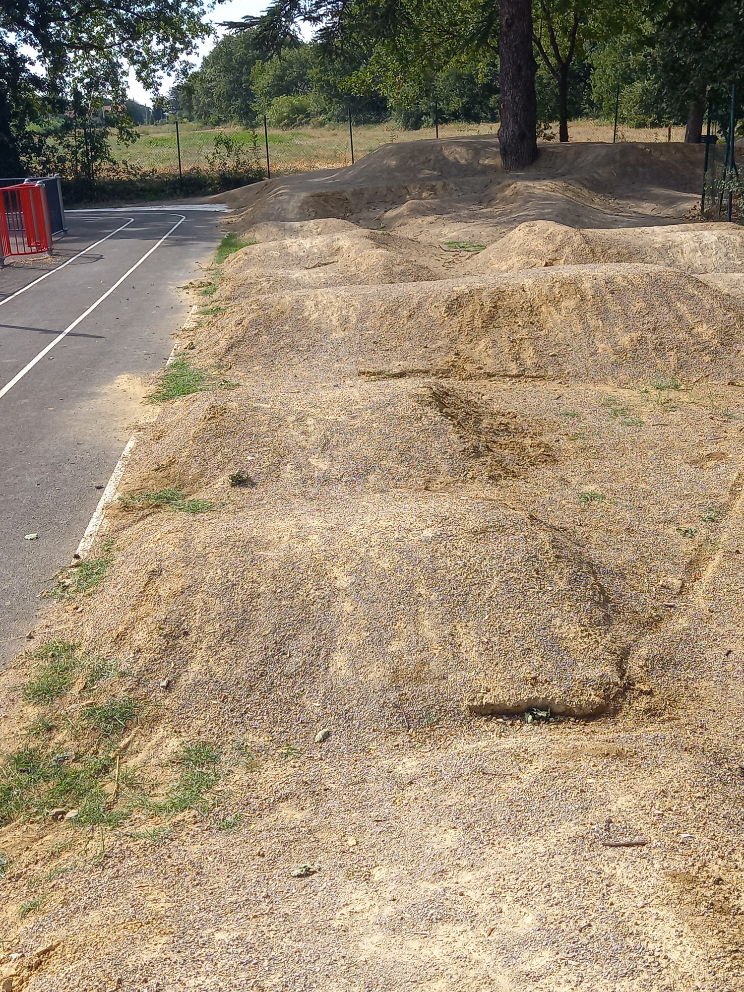On entend par là, un circuit en boucle principalement constitué de bosses et de virages inclinés, et destiné à être parcouru à vélo (VTT, BMX) sans pédaler, grâce aux mouvements de flexion-extension des bras et des jambes avec transfert de poids. La piste, si elle est faite en matériaux durs (béton, matières préfabriquées...) peut être utilisée aussi par les skates, les trottinettes, les rollers et même les patins à roulettes, les draisiennes pour tout-petits et les fauteuils roulants. Il peut y avoir des pistes particulières pour les débutants. Au minimum 400 à 500 m² sont préconisés pour leur installation. Des normes sont progressivement mises en place depuis 5 ou 6 ans. Ces pistes peuvent être réalisées en terre comme à Espondeilhan.
