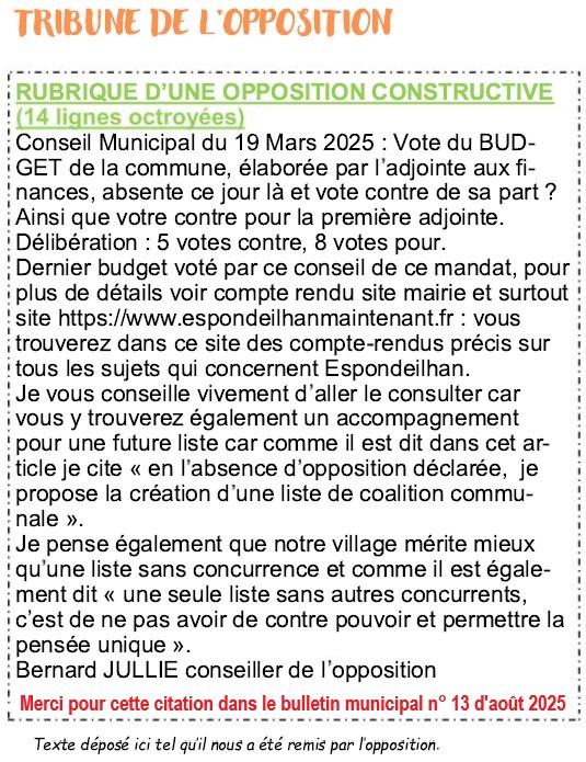 Espondeilhan, écrits et justifications d'après discussion suite au conseil du 25/06/2025 avec le maire et un adjoint (publié le 22/07/2025)