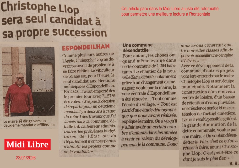 Parution du Midi-Libre le 23/01/2026 (publié le 24/01/2026)